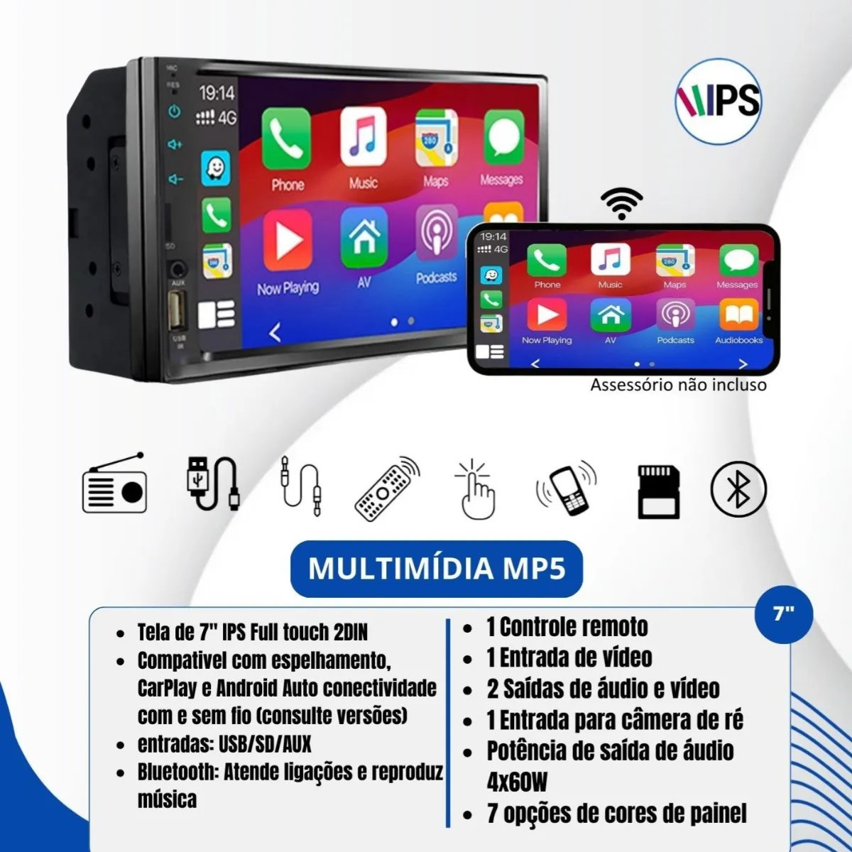 – Tela IPS de 7″ com touch screen capacitivo, formato 2DIN